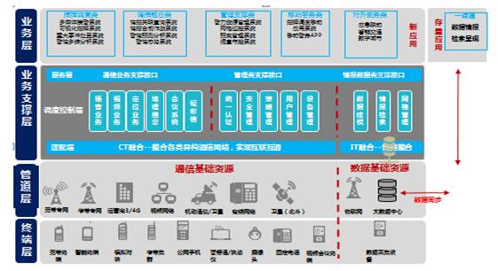 该方案横向整合联通有线、无线、卫星、视频等通信系统,集成接入图像信息、警用地理信息、信息资源服务等信息平台,纵向贯通部、省、市、县多级指挥通信平台,满足跨区域、跨层级、跨警种指挥通信要求,并具有以下特色: